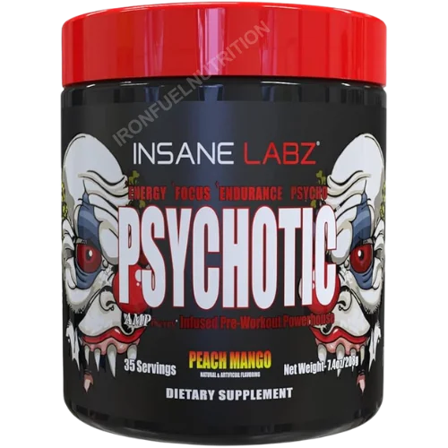 Featuring a potent 4459mg Psychotic Blend with Beta-Alanine, Creatine, Caffeine, and AMPiberry. Get 35 servings of the ultimate pre-workout fuel!